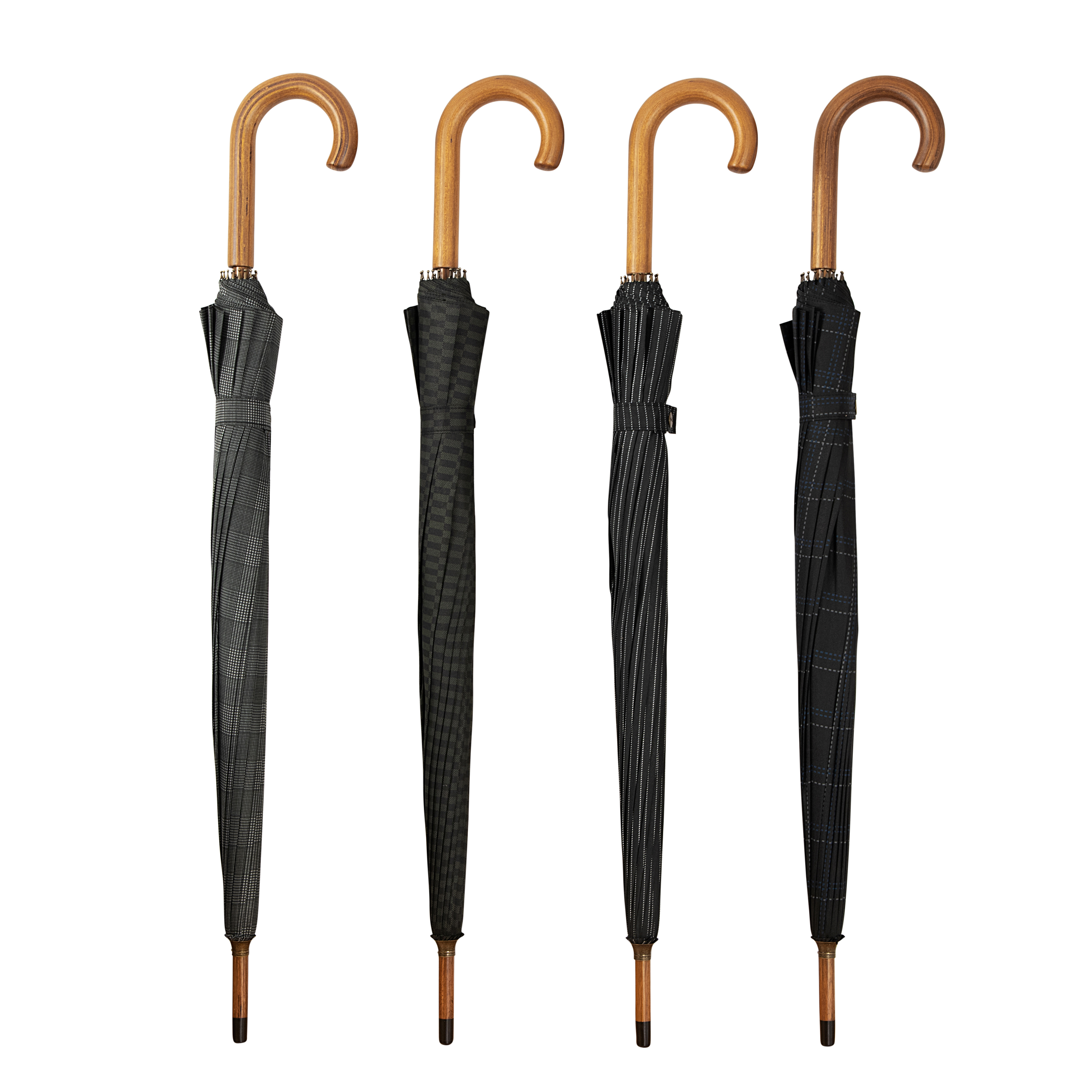 GR-441-ASS Falcone® umbrella, 16 panels, black fiberglass ribs, wooden shaft and crook handle, various prints, available in assorted pack. The depicted prints may change.