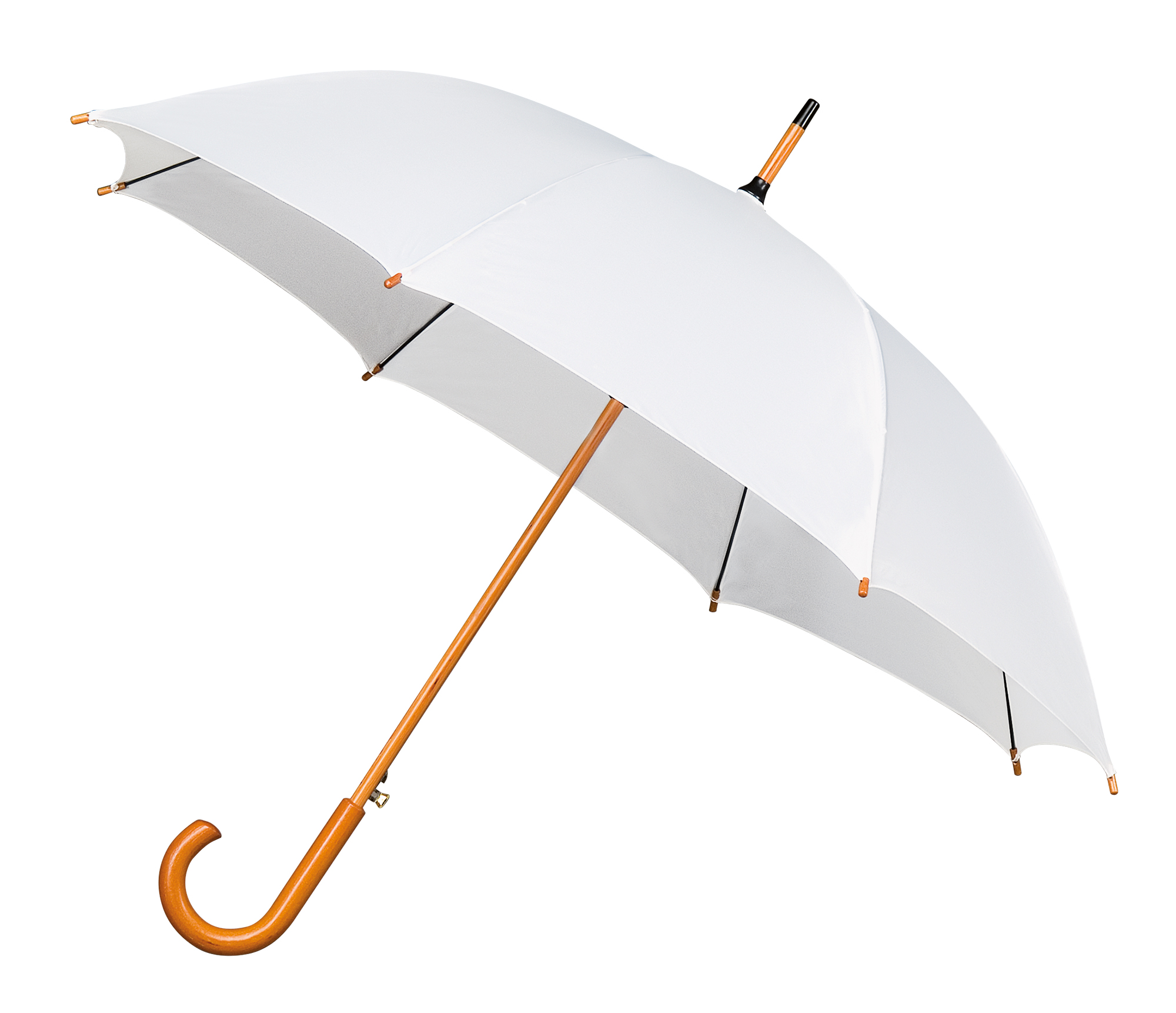 LA-15 umbrella, automatic, wooden shaft and crook handle.