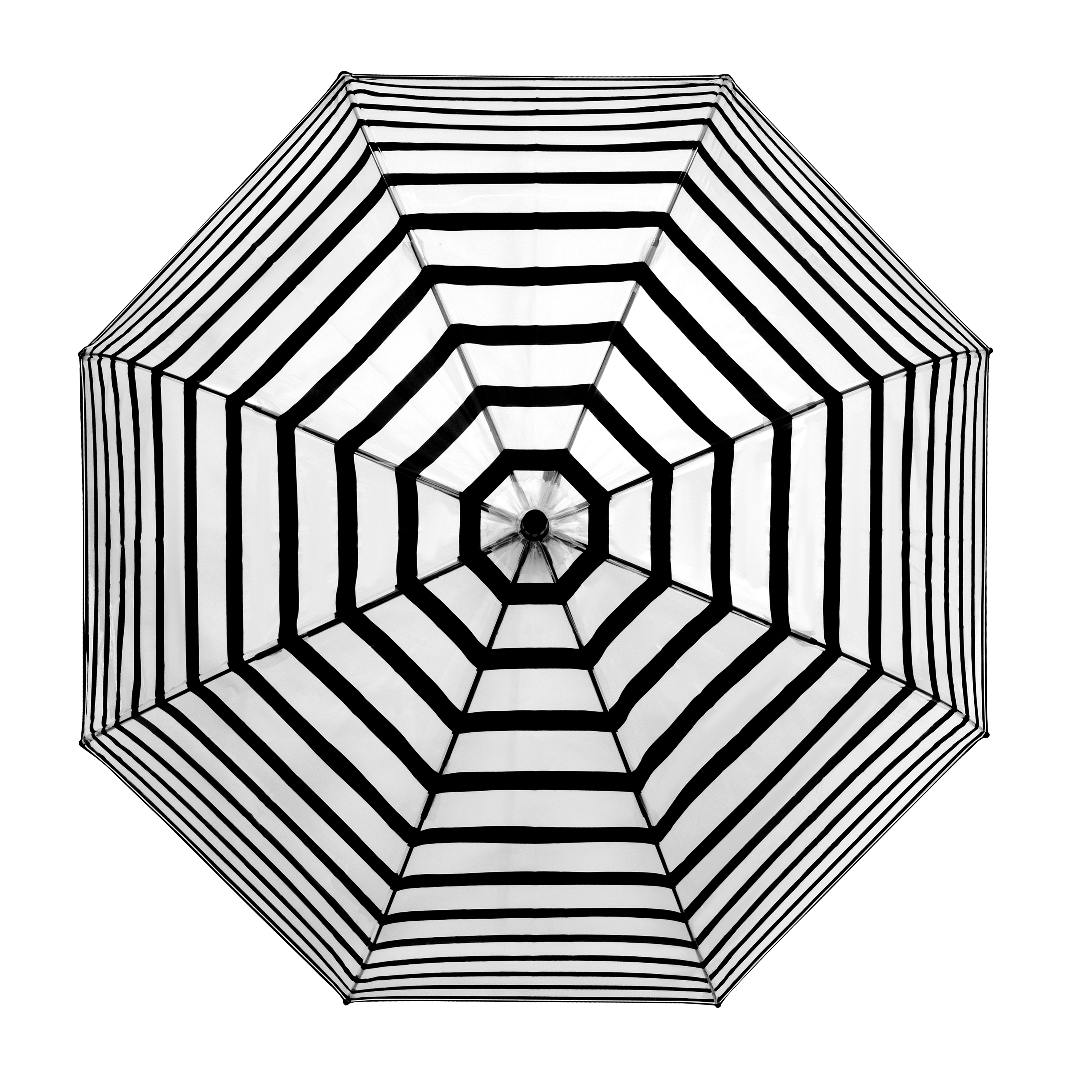 LA-29 Falconetti® raindome umbrella, automatic, black metal/fiberglass ribs, 8 mm black metal shaft, transparent POE with stripe design, black plastic crook handle and tips.