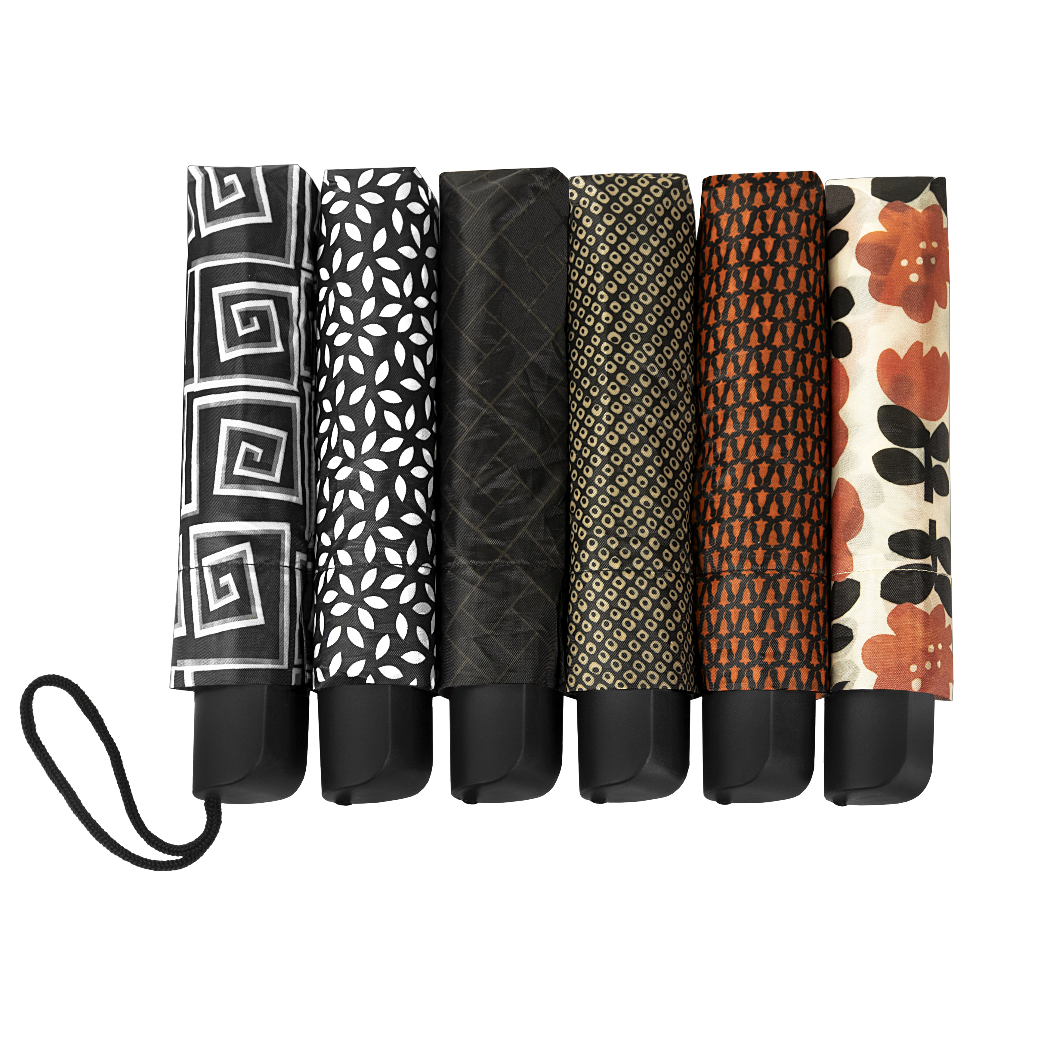 LF-114-B Falconetti® folding umbrella, 3-section, metal shaft and frame, black plastic handle, with selfcase, various prints, only available in assorted pack.