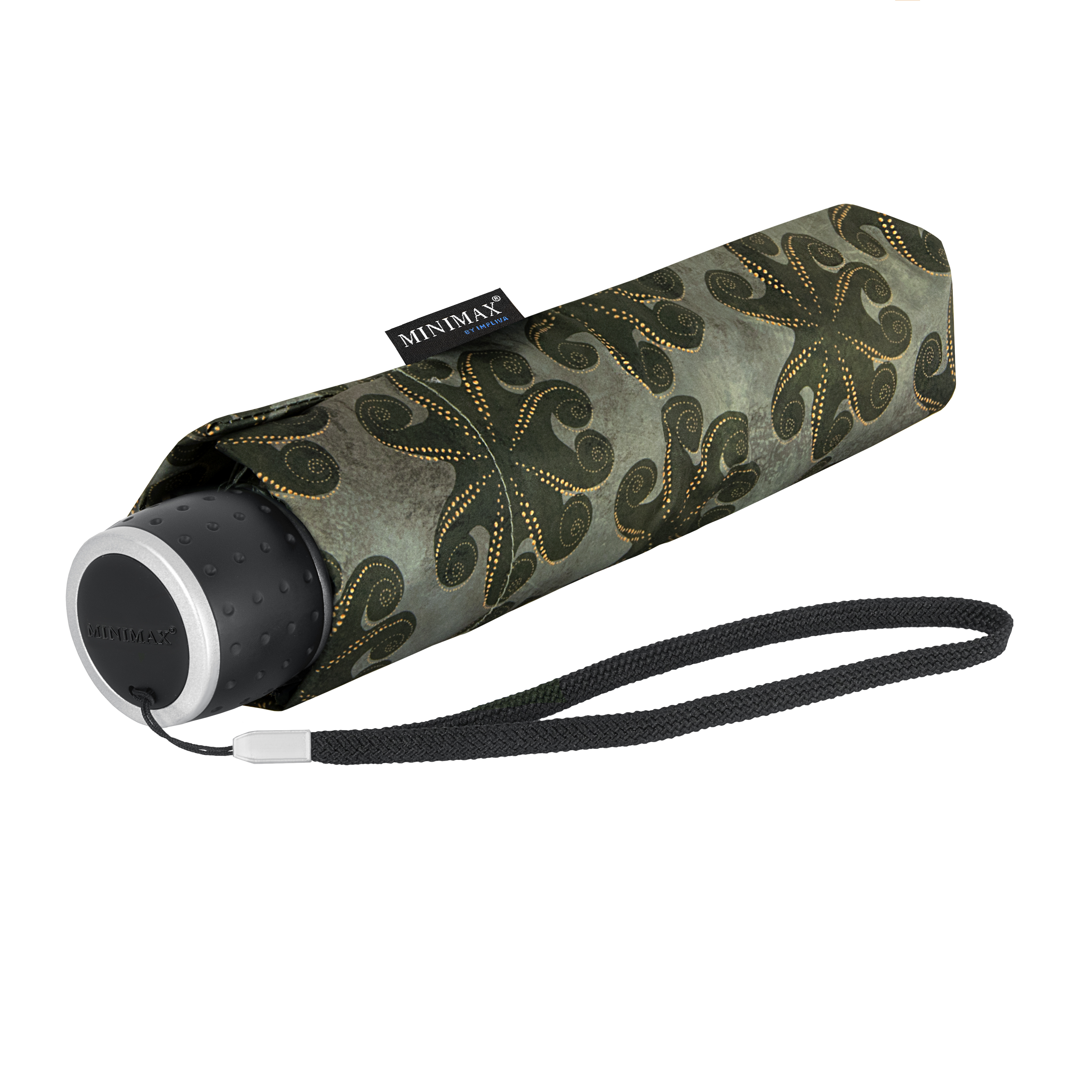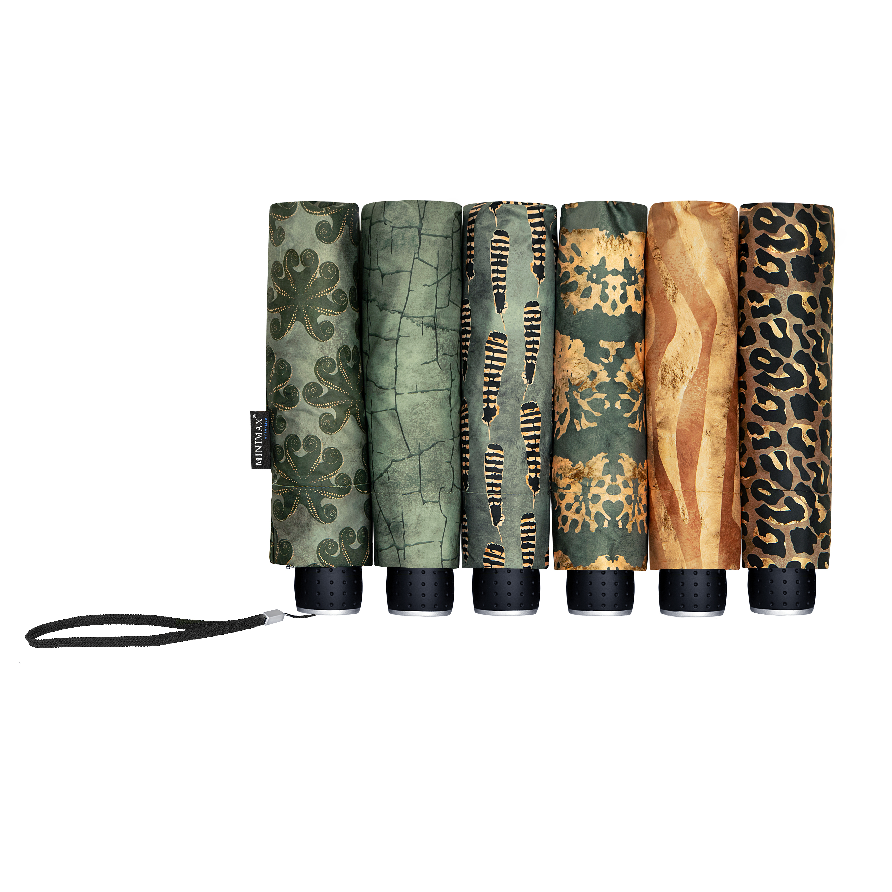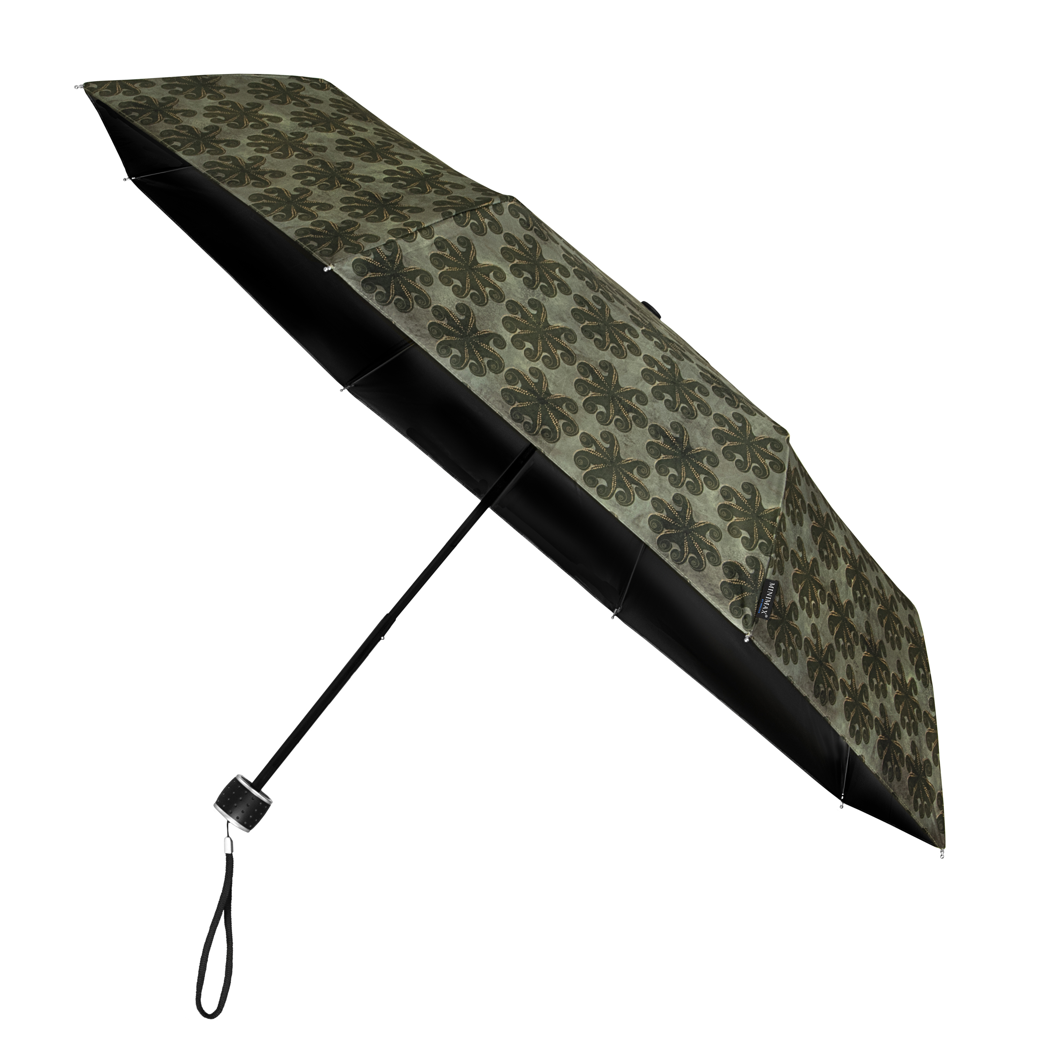 LF-196-ASS miniMAX® folding umbrella, windproof, 3-section, metal shaft, black fiberglass ribs, black PU-coated plastic handle, with selfcase. Various prints, only available in assorted pack.