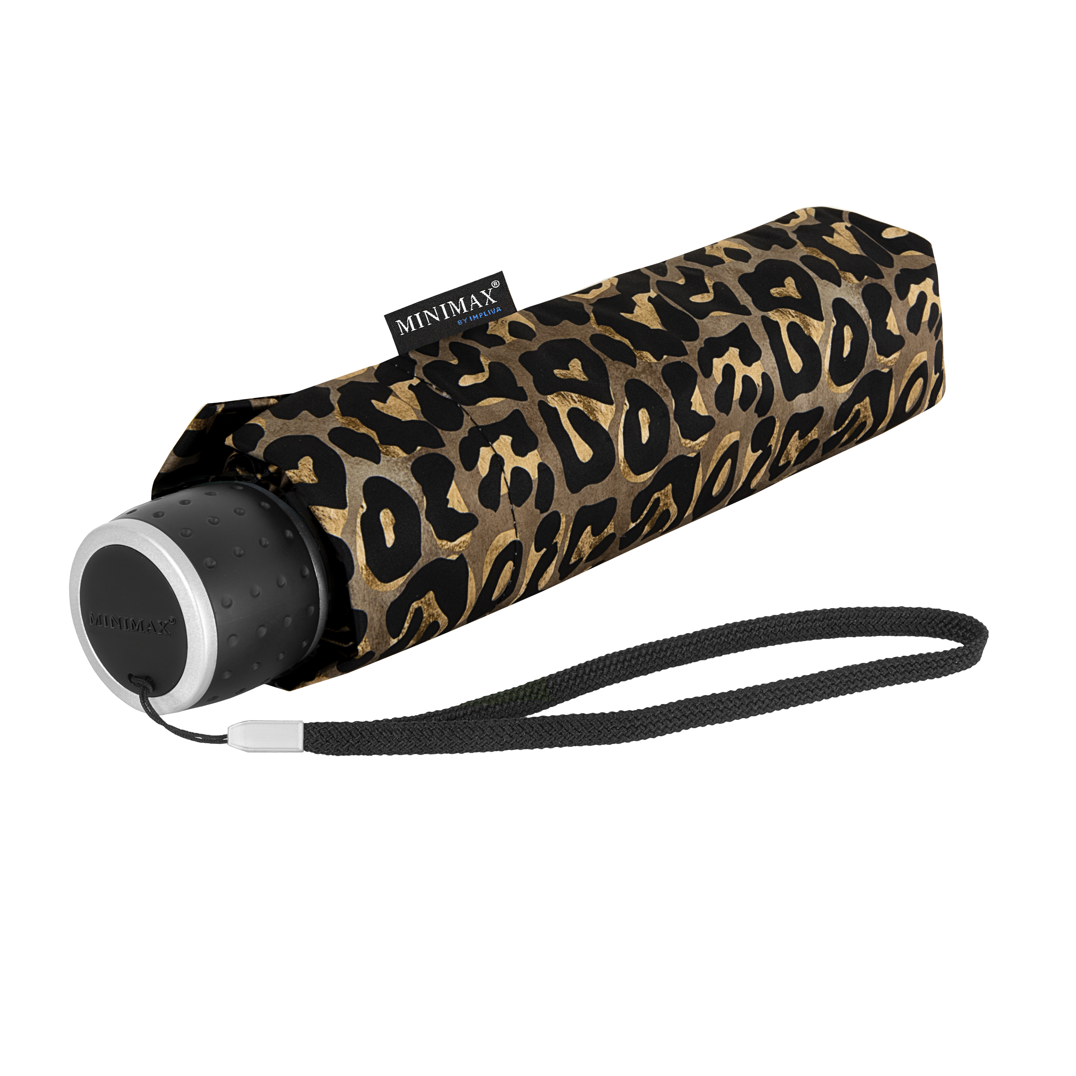 LF-196-D miniMAX® folding umbrella, windproof, 3-section, metal shaft, black fiberglass ribs, black PU-coated plastic handle, with selfcase.