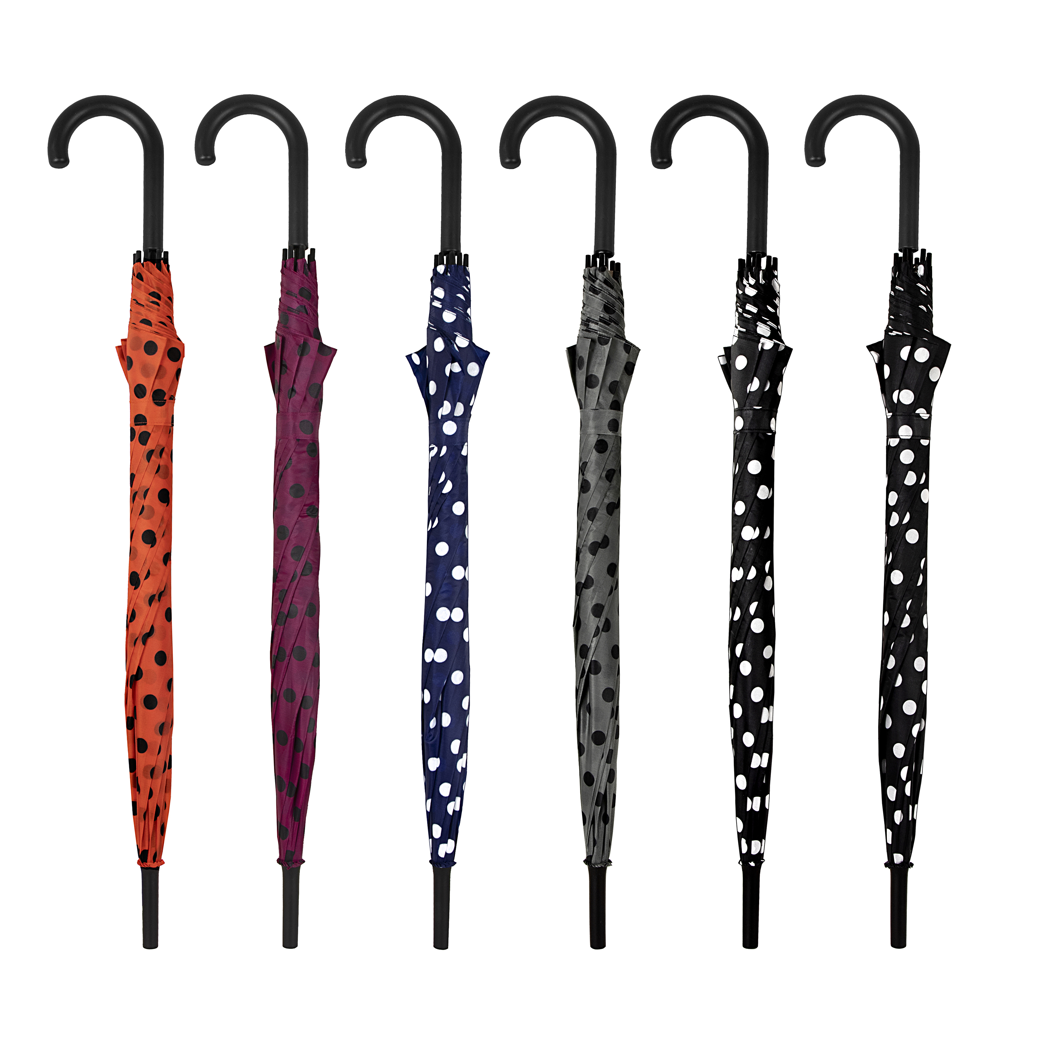 GA-309-D Falconetti® umbrella, black shaft, fiberglass ribs, polyester cover, black plastic crook handle and tips, various prints, only available in assorted pack.