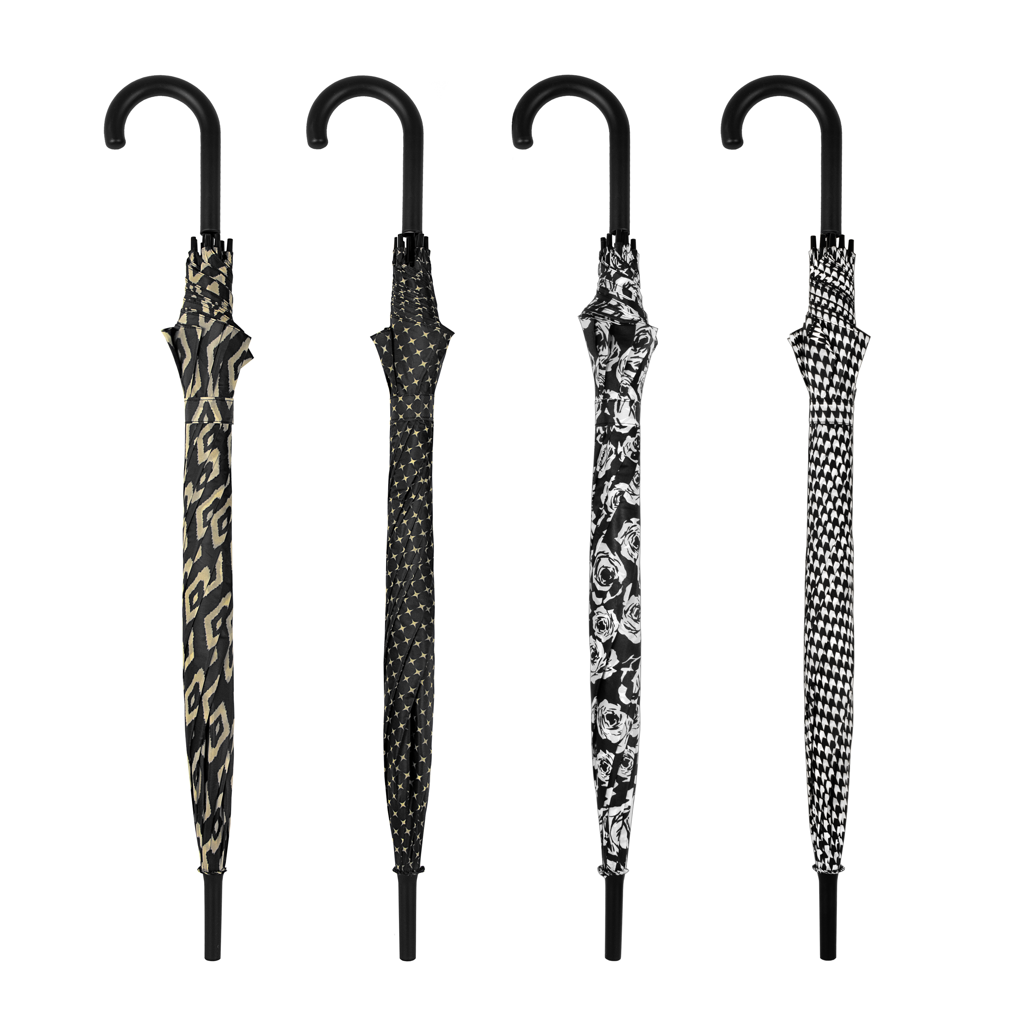 GA-309-ZW Falconetti® umbrella, black shaft, fiberglass ribs, polyester cover, black plastic crook handle and tips, various prints, only available in assorted pack.