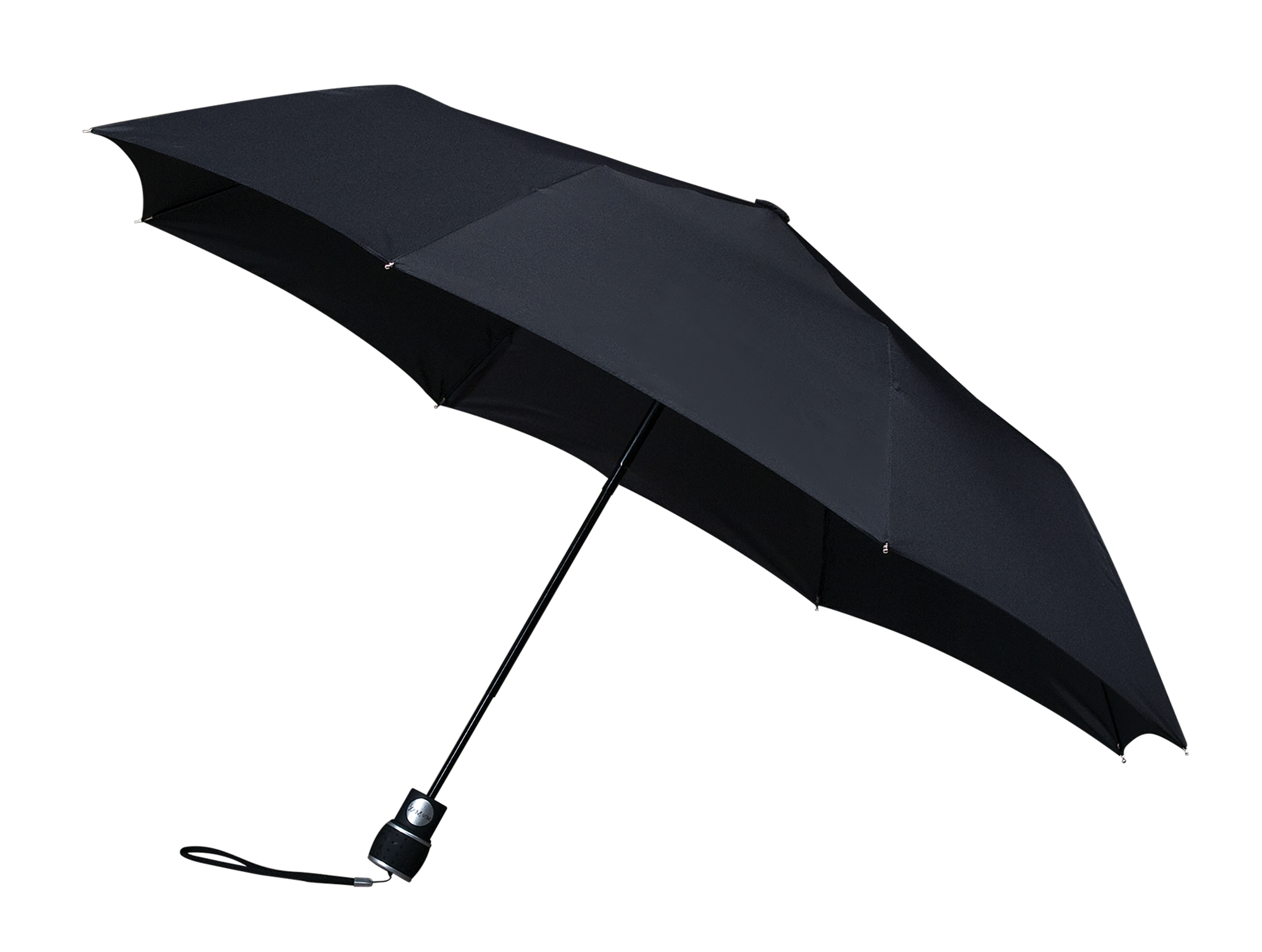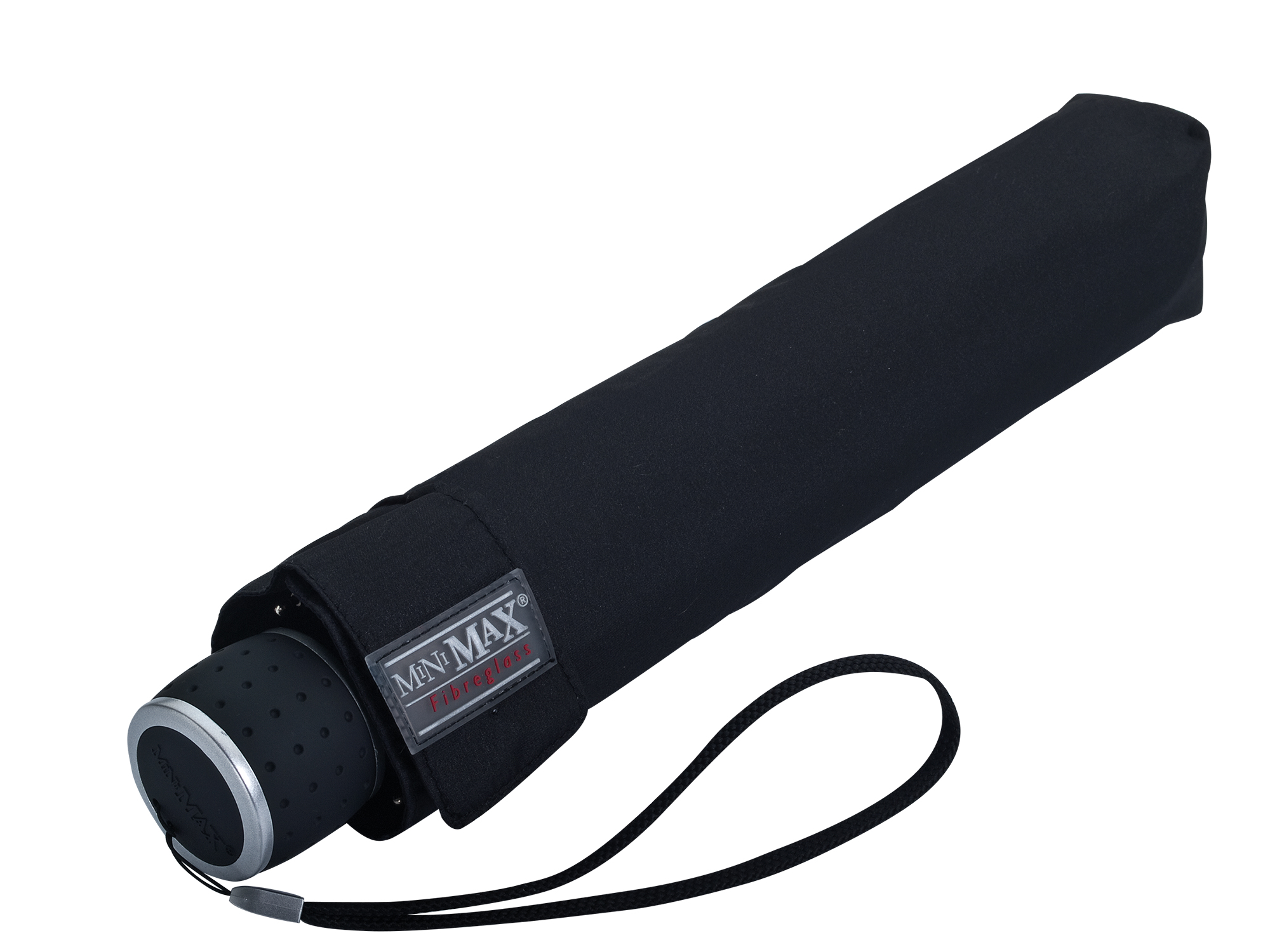 LGF-360 miniMAX® folding umbrella, automatic, windproof, 3-section, black shaft, black fiberglass ribs, matching colour rubber finished plastic handle, with selfcase.