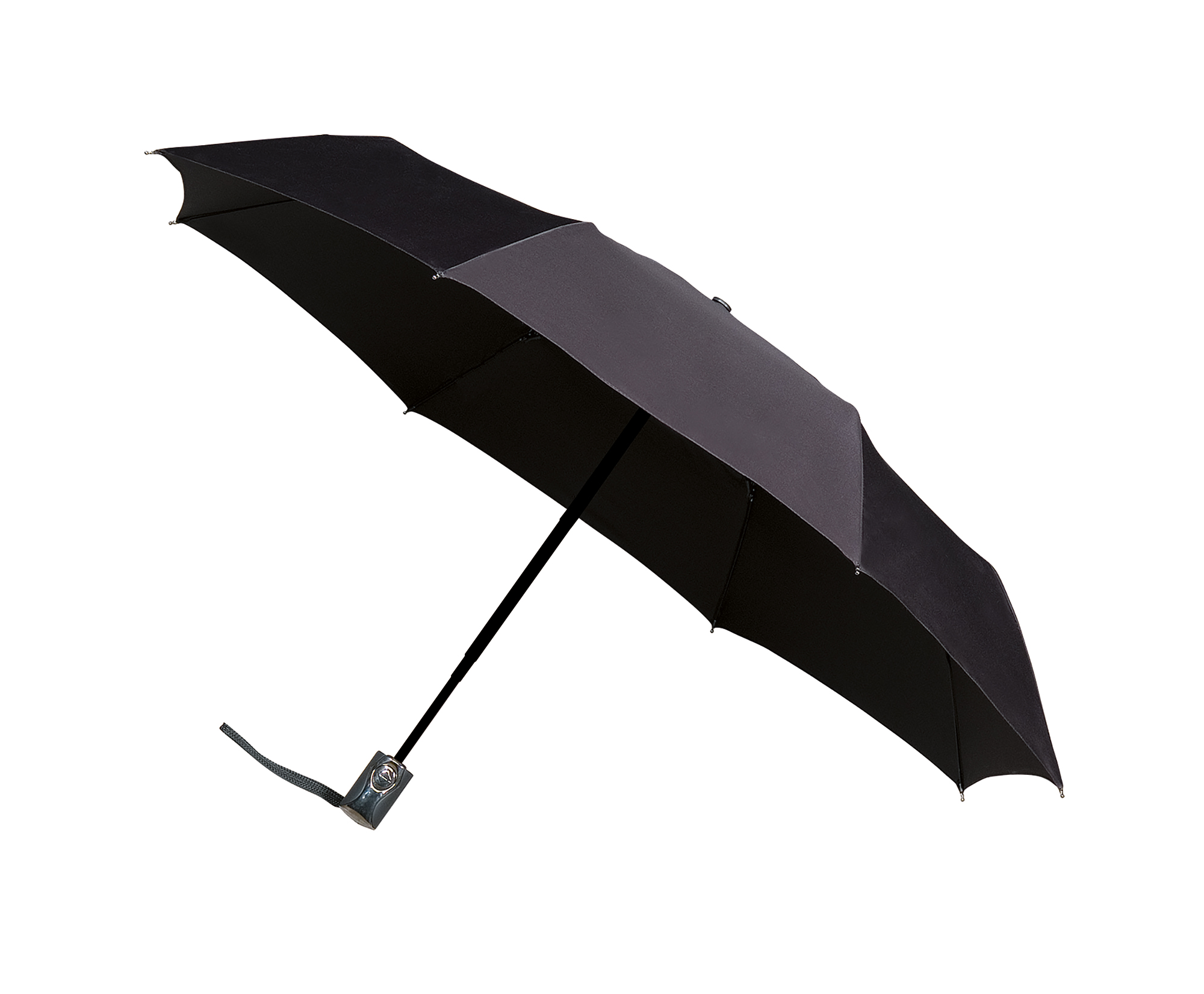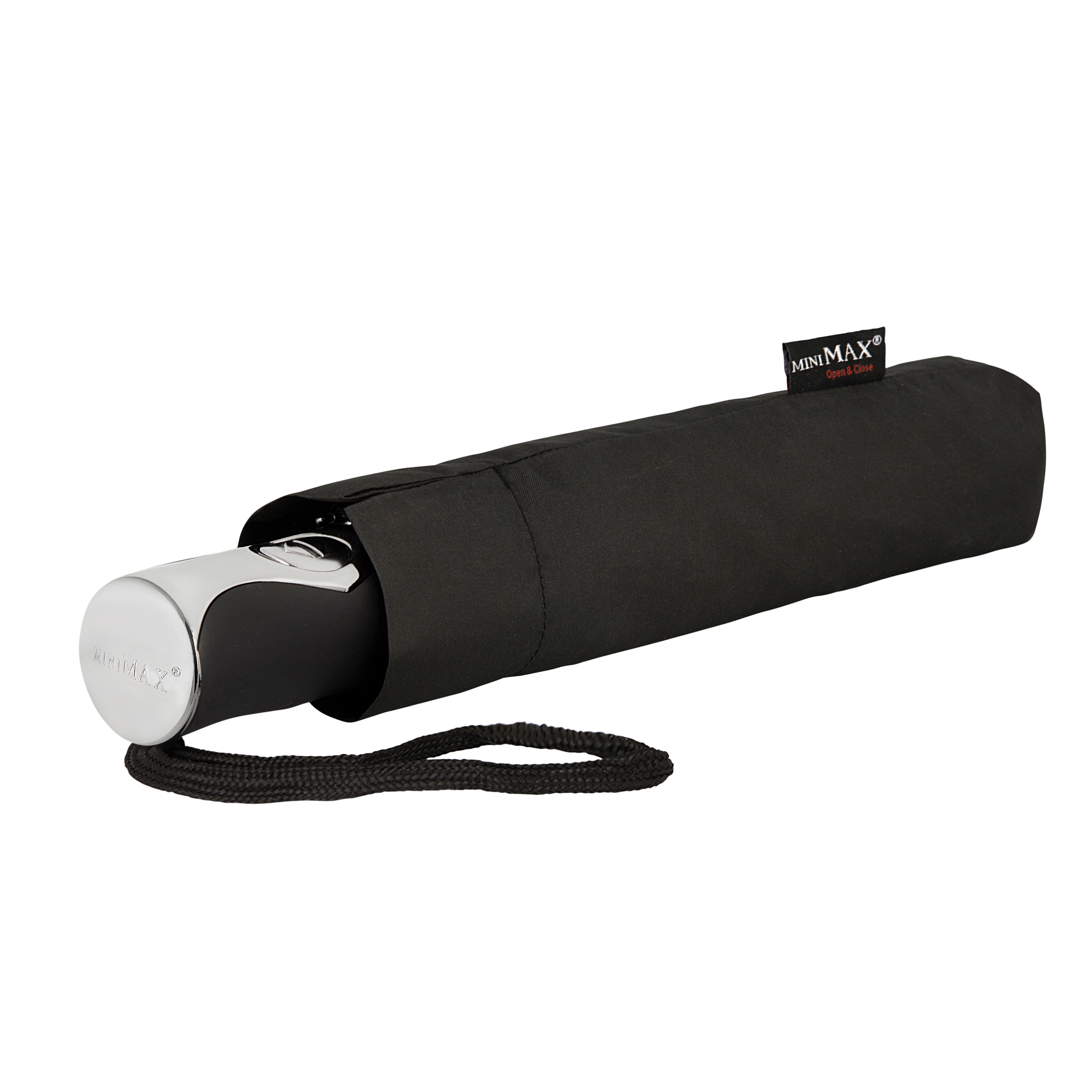 LGF-400 miniMAX® folding umbrella, windproof, automatic open and close system, 3-section, black shaft and black fiberglass frame, matching colour rubber-finished handle, with selfcase.