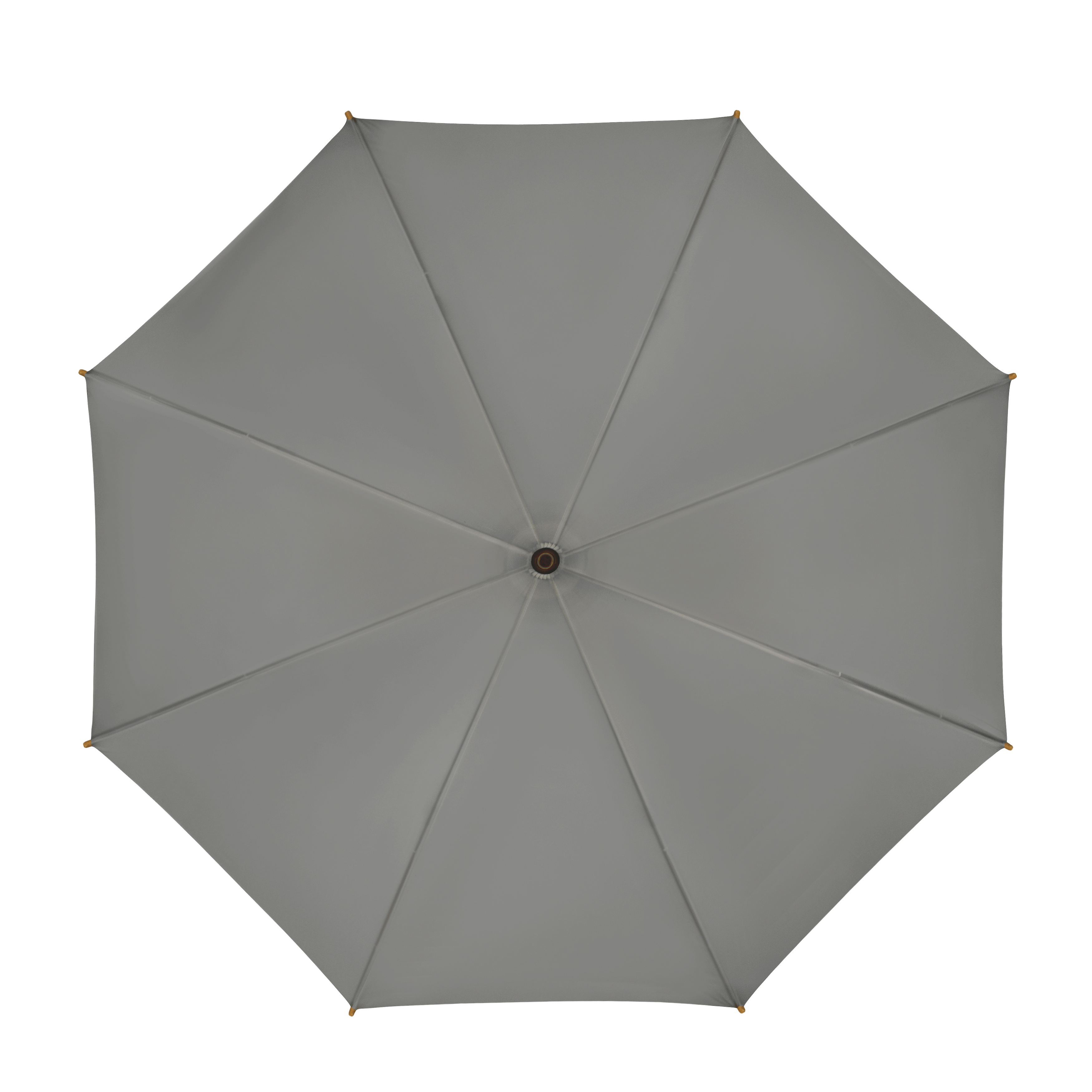 LR-99 ECO by IMPLIVA the classic windproof umbrella with wooden stick and round wooden handle in ECO version. The high quality cover is 100% made of recycled PET bottles. The wooden stick and the round wooden handle give it a natural and classic look. These environmentally friendly materials, in combination with the strong and flexible fiberglass frame, ensure a maximum lifespan. And this means the smallest possible ecological footprint! The ideal classic umbrella for environment-conscious users.