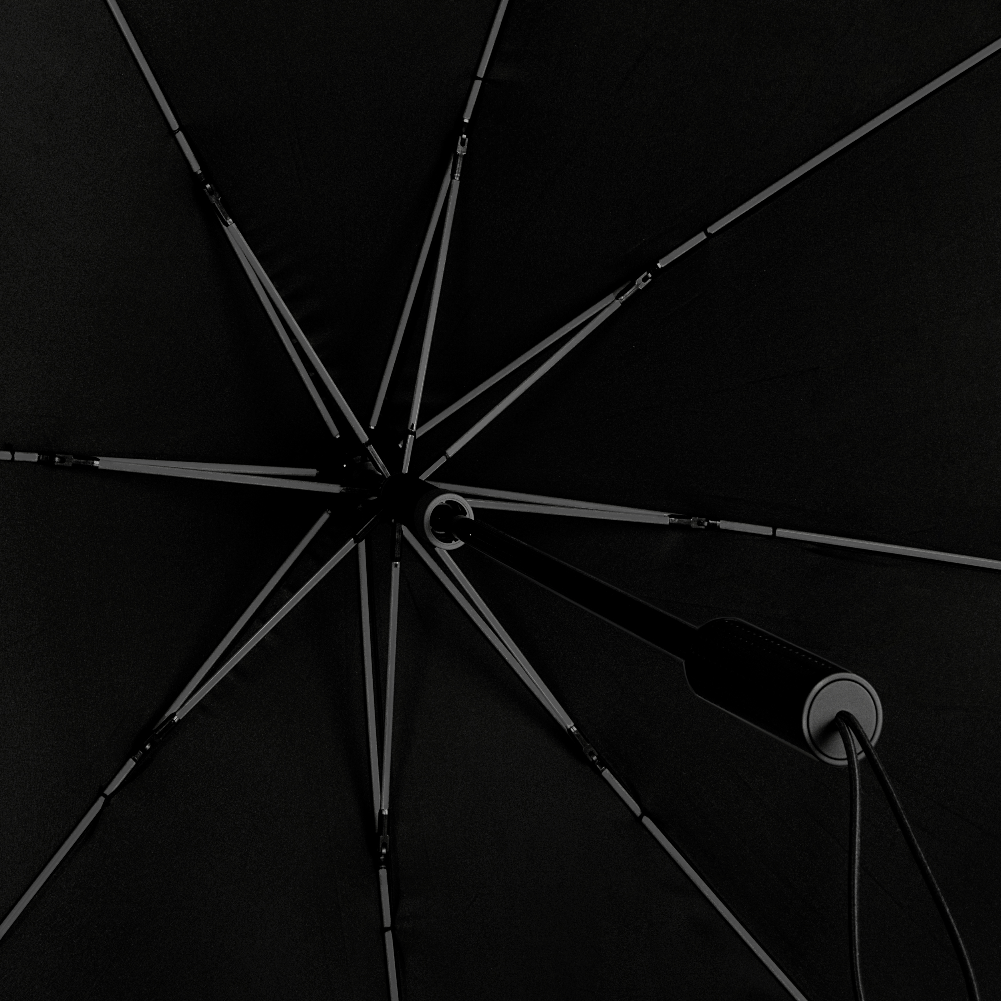 The STORMaxi® storm umbrella is both effective and sustainable. "It's just smart not to use more materials in a design than you actually need!" This is what the Dutch consumer affairs programme KASSA, aired by the VARA broadcasting association, said in praise of the STORMaxi's® efficient material usage. What's more: the umbrella doesn't break, even under extreme weather conditions! So STORMaxi® is both an effective and very sustainable storm umbrella! ST-12 STORMaxi® aerodynamic storm umbrella. This umbrella has been wind tunnel tested and easily resists winds up to 100 kms/h. The aerodynamic storm umbrella with the broad back for maximum protection against rain!!