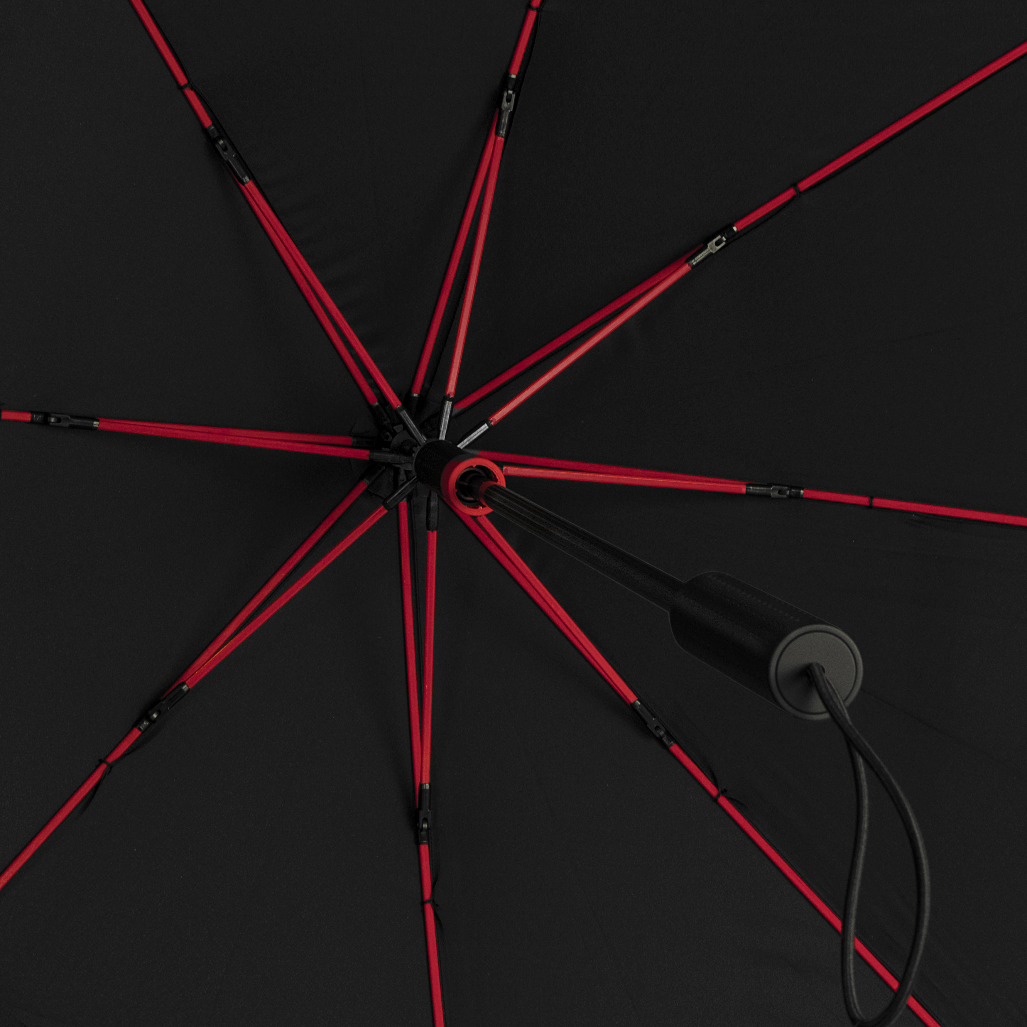 The STORMaxi® storm umbrella is both effective and sustainable. "It's just smart not to use more materials in a design than you actually need!" This is what the Dutch consumer affairs programme KASSA, aired by the VARA broadcasting association, said in praise of the STORMaxi's® efficient material usage. What's more: the umbrella doesn't break, even under extreme weather conditions! So STORMaxi® is both an effective and very sustainable storm umbrella! ST-12 STORMaxi® aerodynamic storm umbrella. This umbrella has been wind tunnel tested and easily resists winds up to 100 kms/h. The aerodynamic storm umbrella with the broad back for maximum protection against rain!!