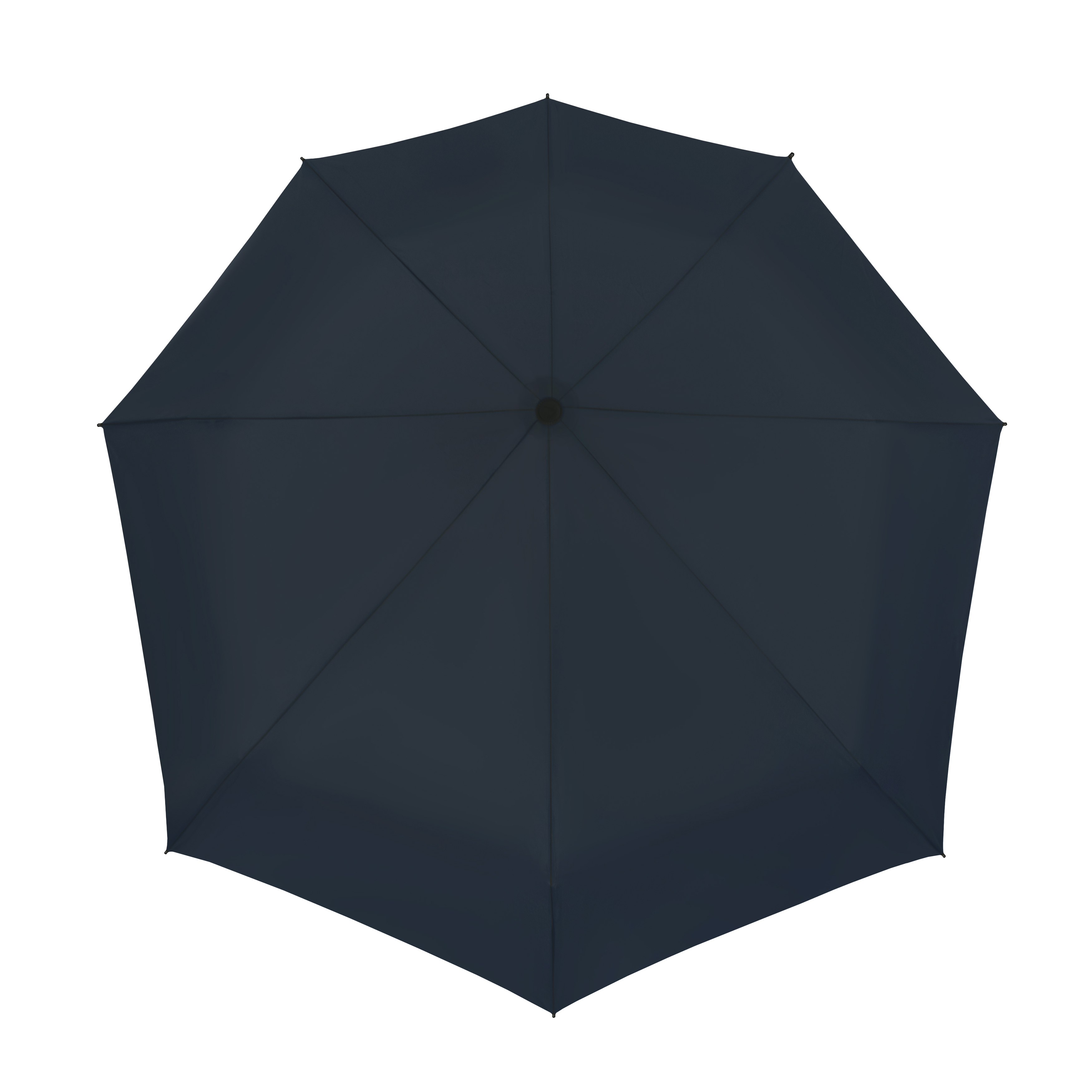 ST-40 STORMaxi aerodynamic foldable storm umbrella. This updated version of our storm umbrella has been tested in wind tunnels and easily withstands wind speeds of up to 80 km/h. The high quality cover consists for 100% out of recycled PET bottles. It features a reinforced 3-part black shaft, reinforced black aluminum/fiberglass frame, comfortable matte black handle, and comes in a matching sleeve. With an automatic open and close mechanism, it is very user-friendly. The wide back of the STORMaxi provides maximum protection in the rain.