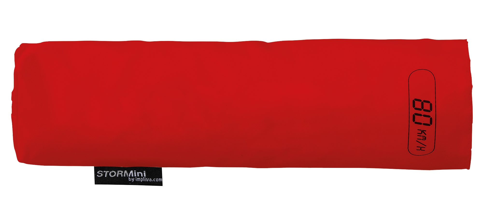 ST-9 STORMaxi® aerodynamic foldable storm umbrella. This improved version of our storm umbrella has been wind tunnel tested and easily resists winds up to 80 kms/h. It has a black reinforced 3-section shaft and a reinforced black aluminium/fiberglass frame. It also has a very comfortable matt black handle and comes in a sleeve. The broad back of the STORMini® offers maximum protection against rain!