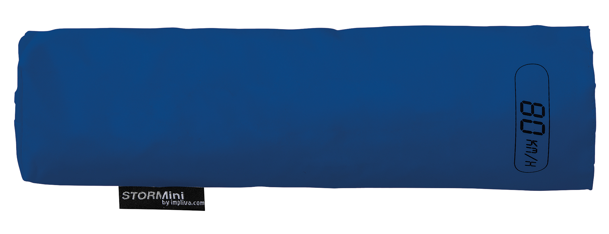 ST-9 STORMaxi® aerodynamic foldable storm umbrella. This improved version of our storm umbrella has been wind tunnel tested and easily resists winds up to 80 kms/h. It has a black reinforced 3-section shaft and a reinforced black aluminium/fiberglass frame. It also has a very comfortable matt black handle and comes in a sleeve. The broad back of the STORMini® offers maximum protection against rain!