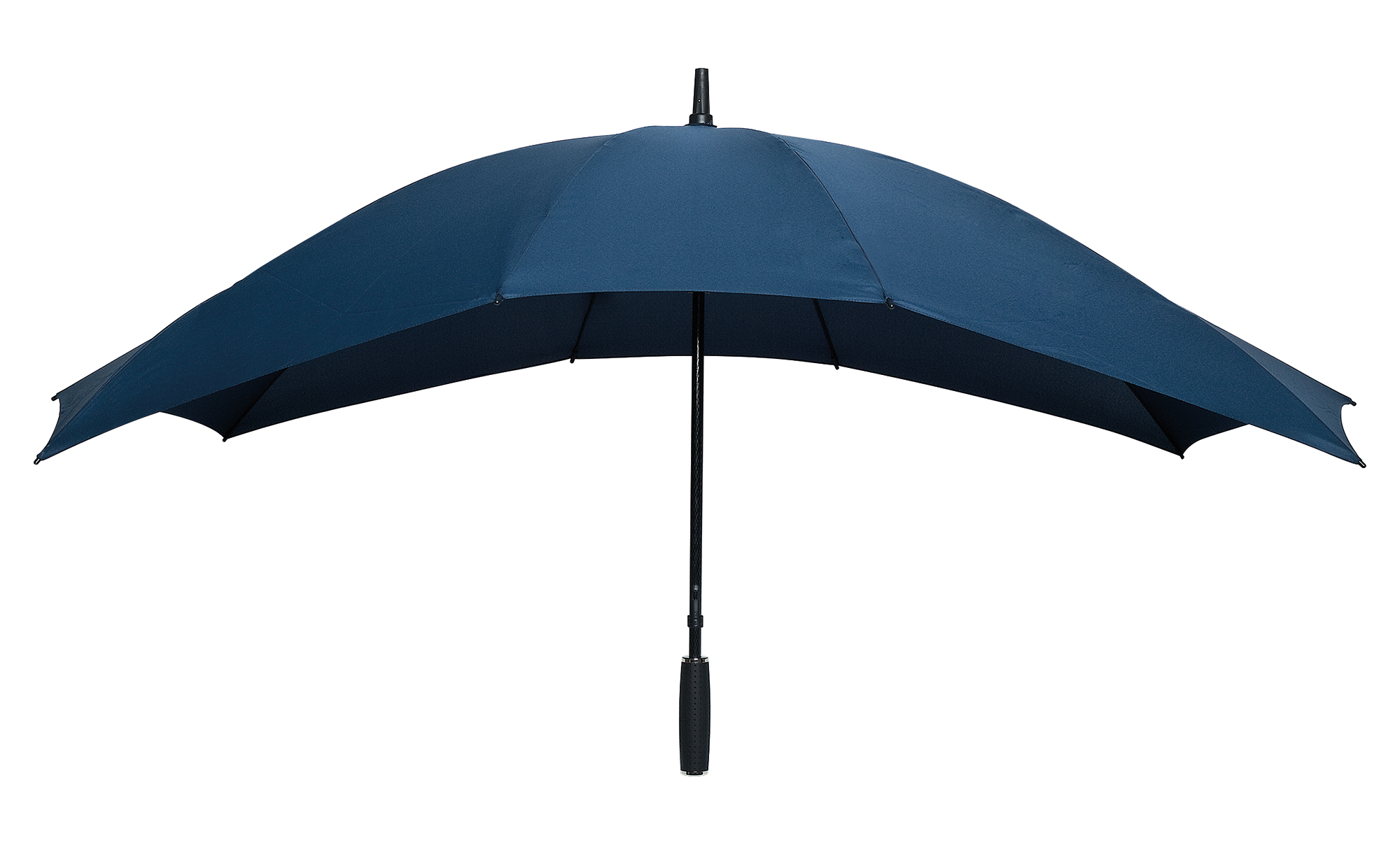 TW-3 twin umbrella, black fiberglass shaft, black fiberglass ribs, black rubber-finished handle.